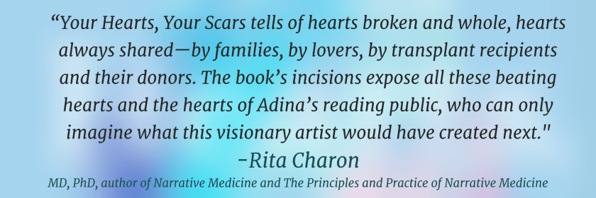Whether writing about the experience of taking her old heart home from the hospital (and passing it around the Thanksgiving table), a summer camp for young transplant patients, or a memorable night on the town, Talve-Goodman’s writing is filled with curiosity, humor, and compassion. Published posthumously, Your Hearts, Your Scars is the work of a writer wise beyond her years, a moving reflection on chance and gratitude, and a testament to hope and kindness.