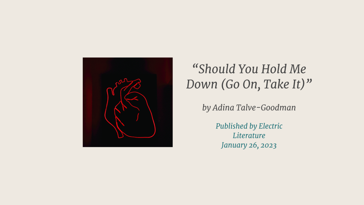 Excerpt from “Your Hearts, Your Scars.” Copyright © 2022 by Adina Talve-Goodman. Forthcoming Jan. 24, 2023, by Bellevue Literary Press. Reprinted by permission of the publisher. All rights reserved.